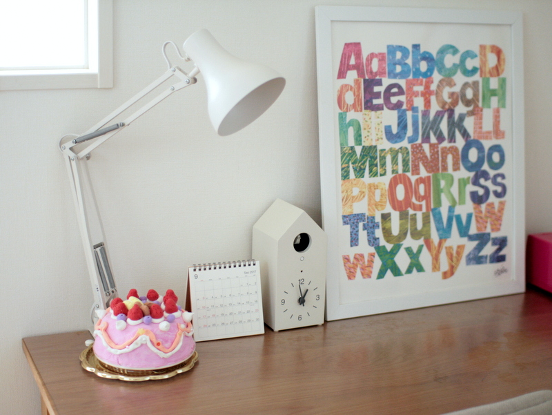 娘の机の上には、無印のカレンダーと鳩時計。