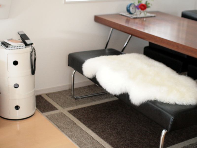 先日IKEAで追加購入した、羊皮のモフモフ。