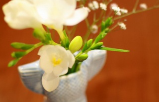 自分にプチ・プレゼント 2014年02月15日 カテゴリ: キッチン 昨日のバレンタイン、東京はず~っと雪。とお~っても寒かった。しかも結婚記念日だというのに若旦那は出張で不在心も寒~いバレンタインでした。そんな中、ちょっとだけ春のお花でテンションUP。リサのドレスにフリージアとかすみ草をいけました。リサ・ラーソンでもって、